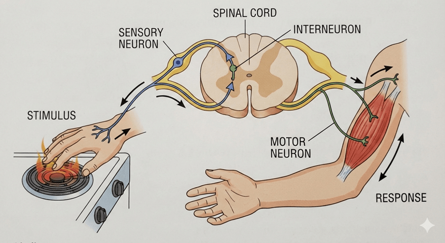 A reflex action is a quick, automatic response to a stimulus without conscious thinking.