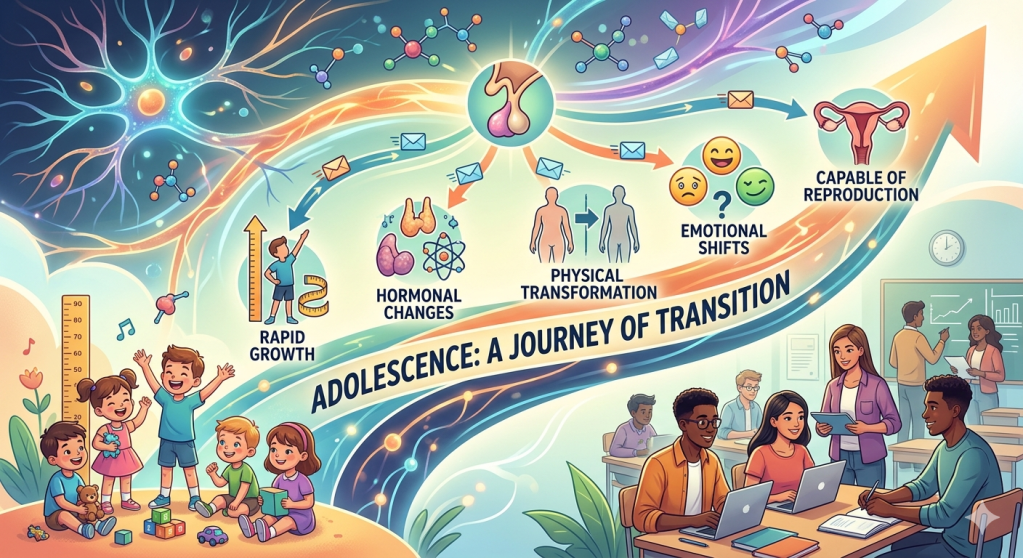 All living organisms grow and change as they move from childhood to adulthood. In humans and many animals, the ability to reproduce does not exist from birth. It develops only after the body has matured enough to support reproduction. This special stage of life, when the body begins to change and prepares for adulthood, is called adolescence.