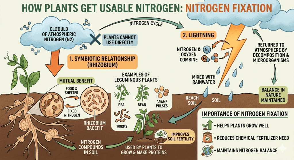 So, nitrogen from the air must be converted into a usable form. This process is called nitrogen fixation.